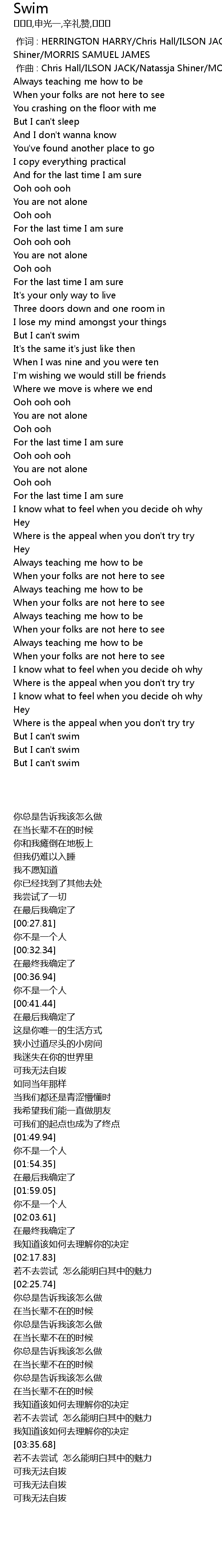 | [00:00.00] | 作词 : HERRINGTON HARRY/Chris Hall/ILSON JACK/Natassja Shiner/MORRIS SAMUEL JAMES |