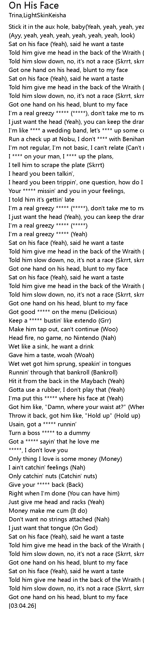 | [01:21.35] | Sat on his face Yeah, said he want a taste |