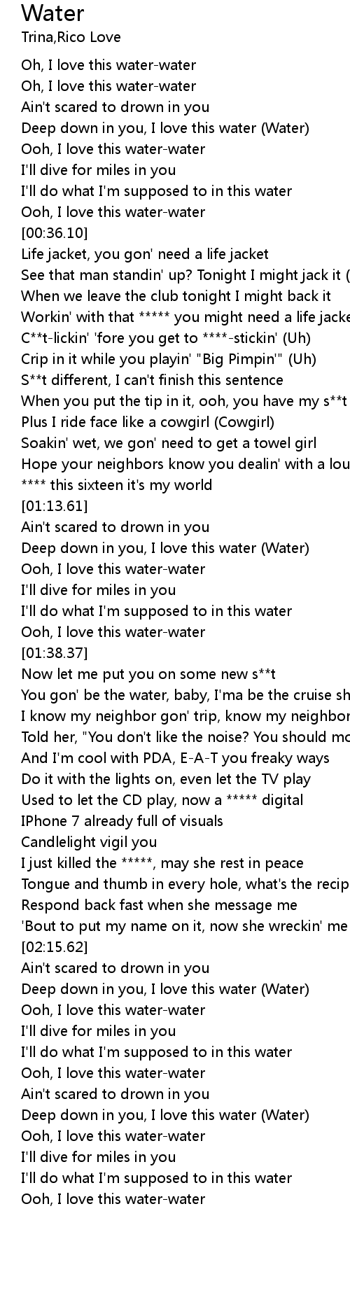 | [00:46.40] | Workin' with that ***** you might need a life jacket, uh |