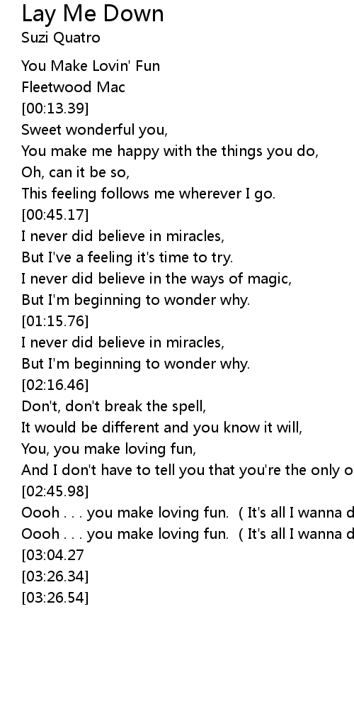 | [03:11.38][03:04.27] | Oooh . . . you make loving fun. It' s all I wanna do. |