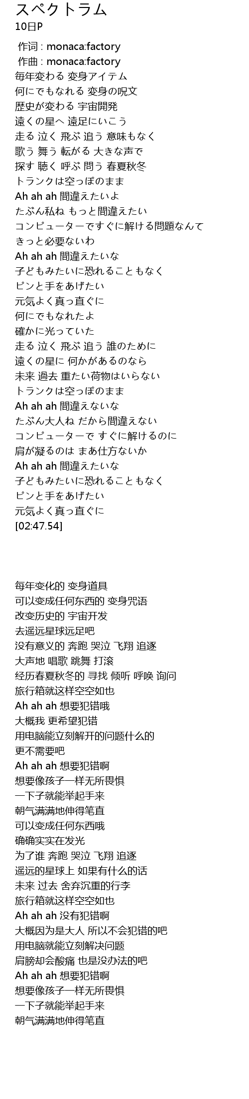 | [00:00.00] | 作词 : monaca:factory |