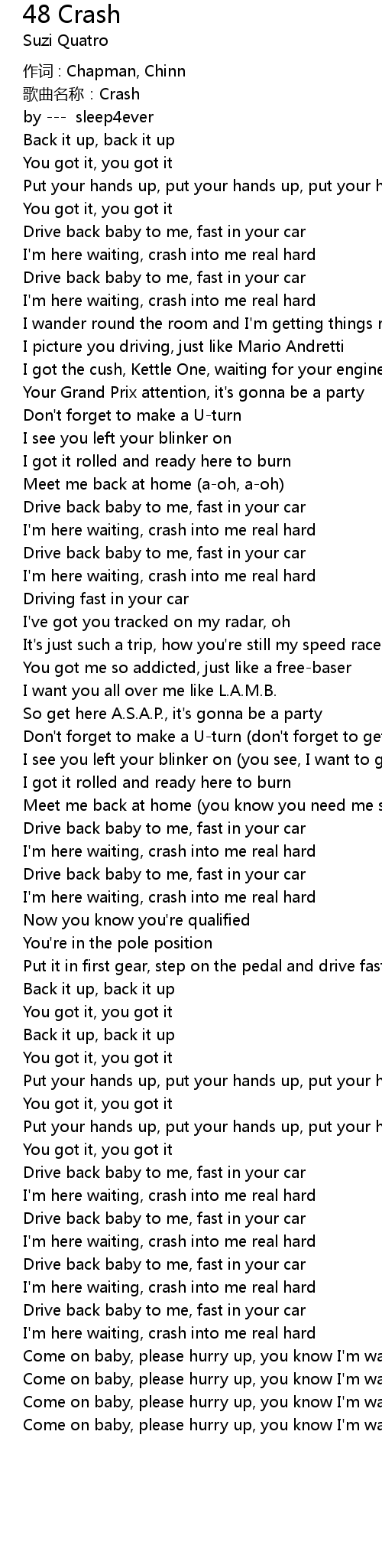 | 歌曲名称:Crash | |