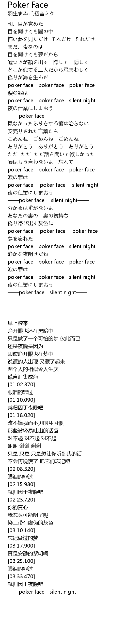 | [00:38.260] | 嘘つきが顔を出す 隠して 隠して |