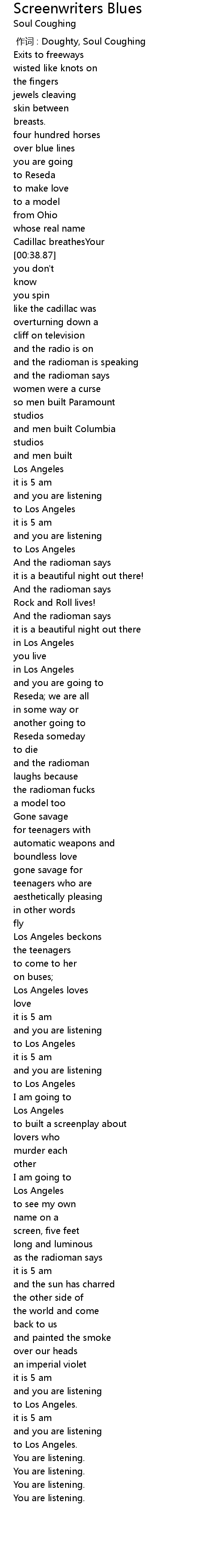 | [00:00.00] | 作词 : Doughty, Soul Coughing |