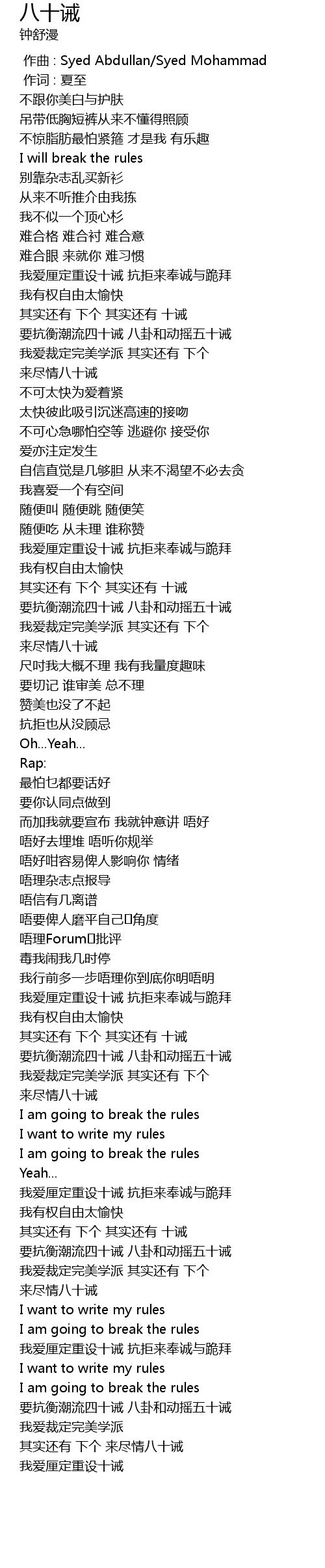 | [02:45.280] | 我爱厘定重设十诫 抗拒来奉诚与跪拜 |