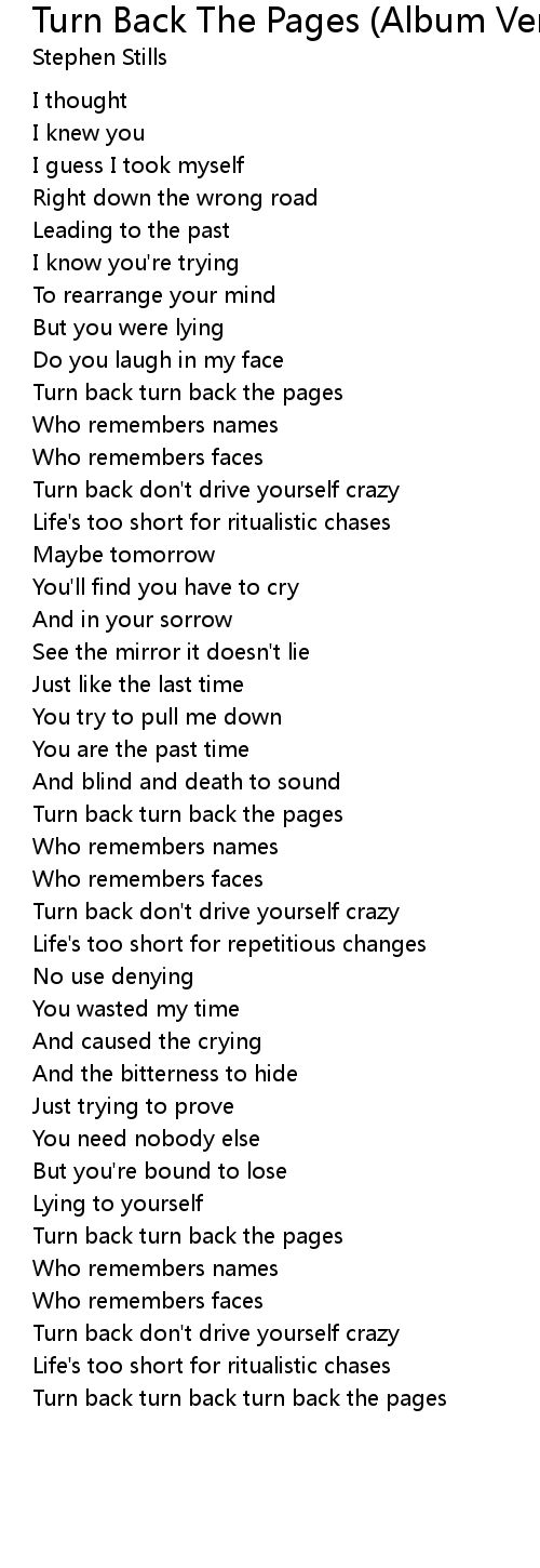 Turn back turn back turn back the pages |