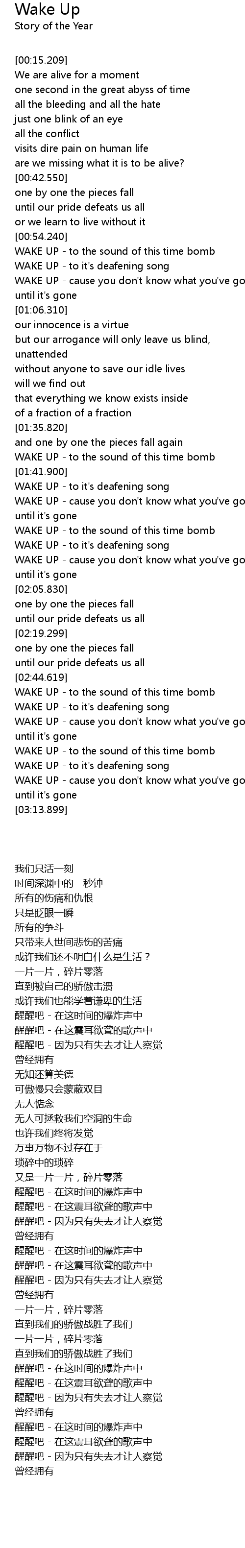| [02:58.499] | WAKE UP - to the sound of this time bomb |