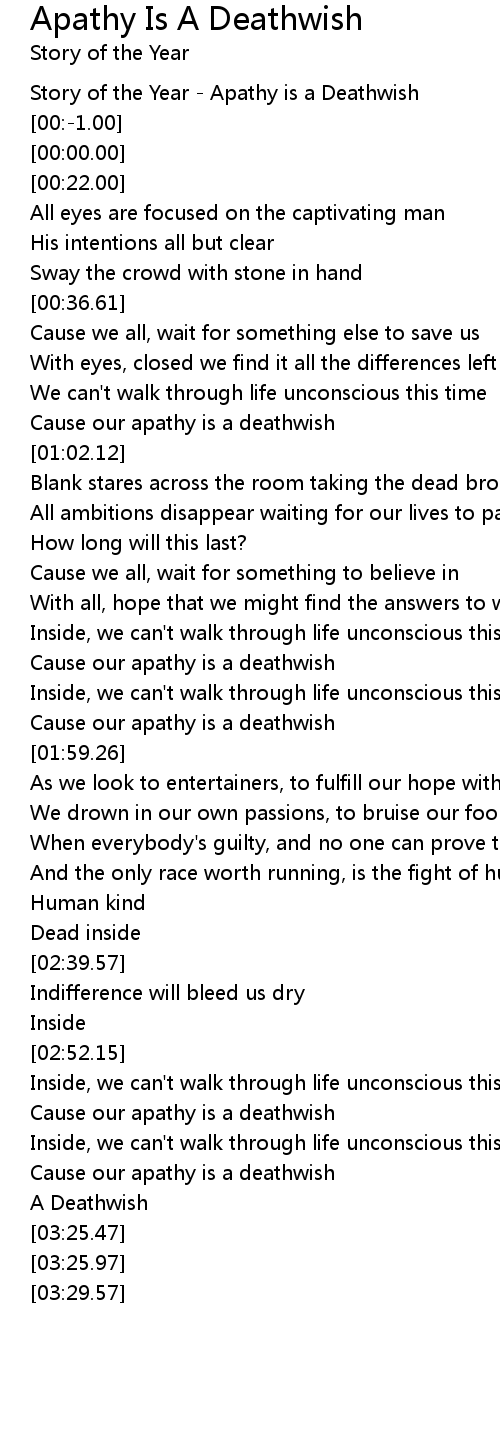 Story of the Year - Apathy is a Deathwish |
