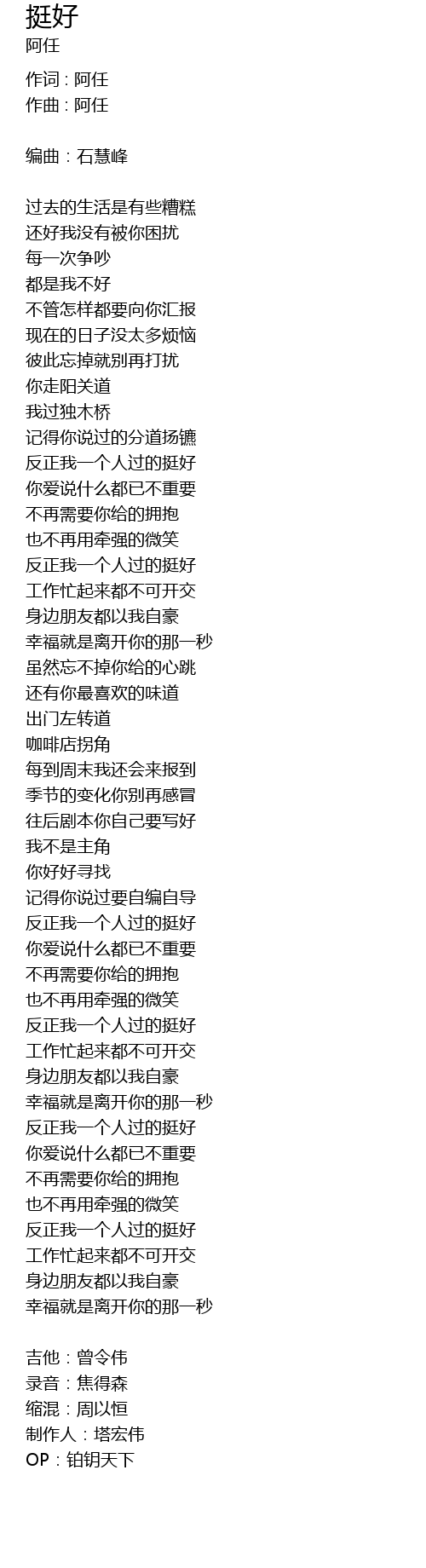 | 作词 : 阿任 | |