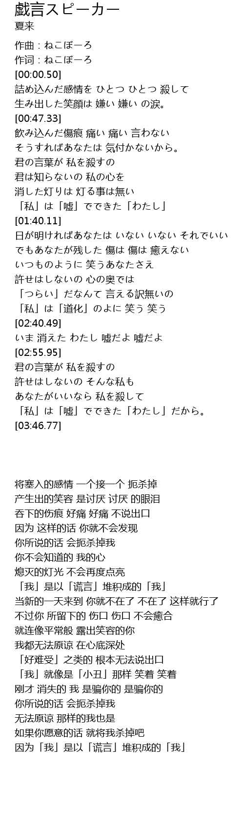 | [01:32.41] | 「私」は「嘘」でできた「わたし」 |