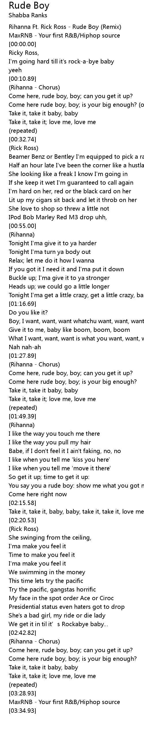 | [01:31.65] | Come here rude boy, boy; is your big enough? |