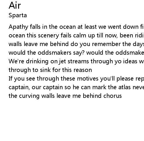 Apathy falls in the ocean at least we went down fighting at the bottom of the ocean this scenery fails calm up till now, been riding fine yeah but the curving walls leave me behind do you remember the days? did you forget those days? what would the oddsmakers say? would the oddsmakers say? chorus: |