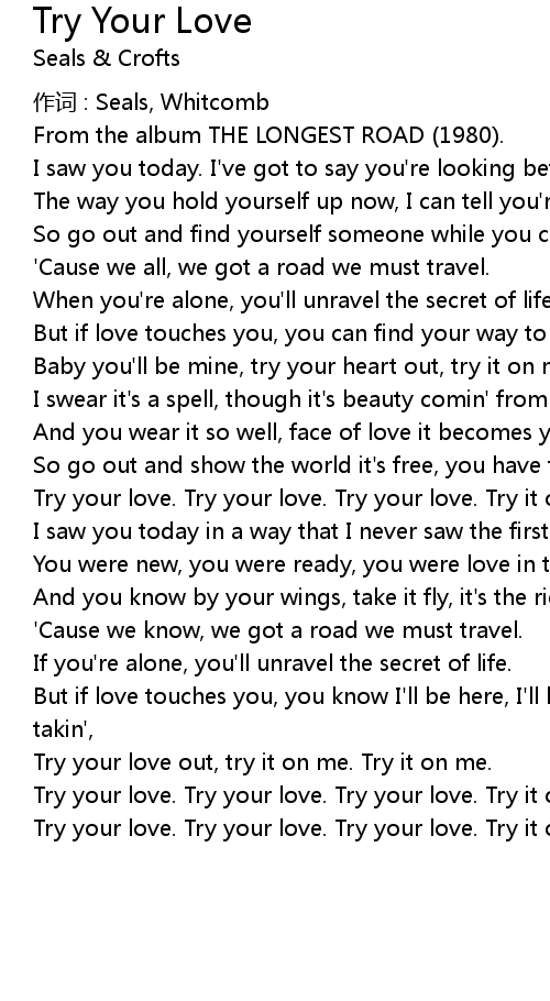 | Try your love. Try your love. Try your love. Try it on me. | |