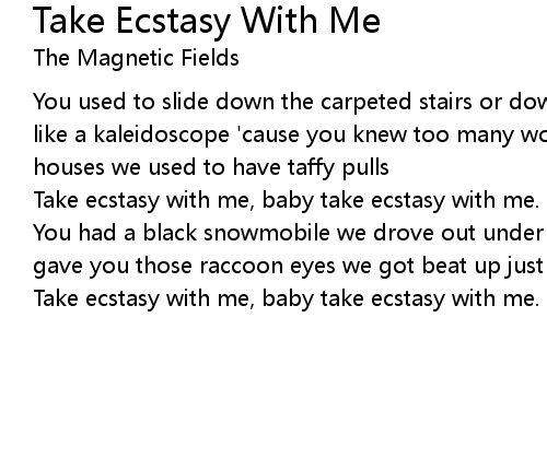 | Take ecstasy with me, baby take ecstasy with me. | |