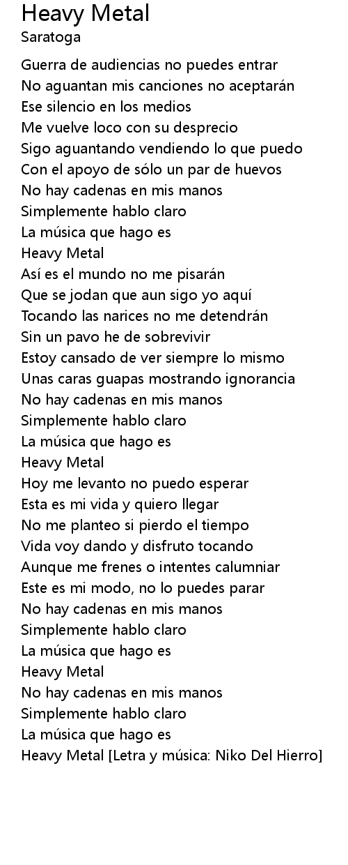 | Heavy Metal Letra y mú sica: Niko Del Hierro |