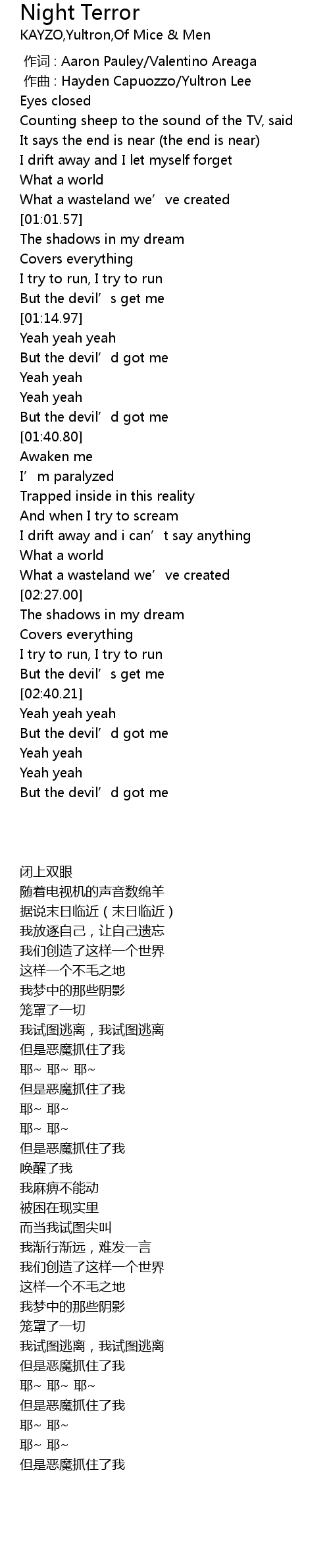 | [00:00.00] | 作词 : Aaron Pauley/Valentino Areaga |