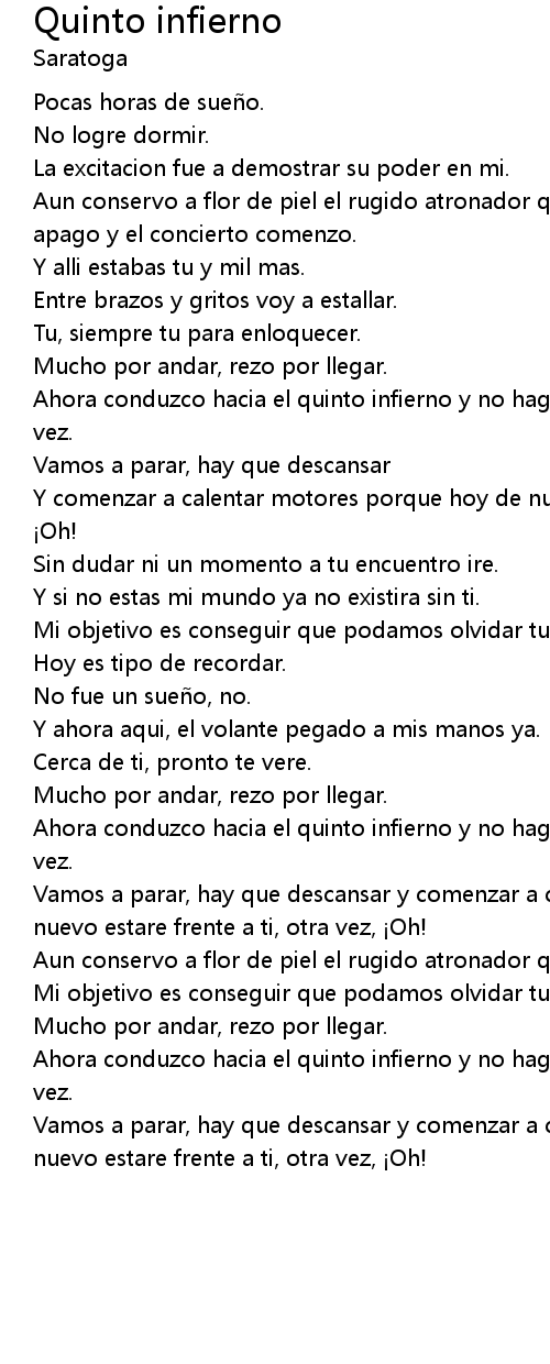 | Song | Quinto infierno |