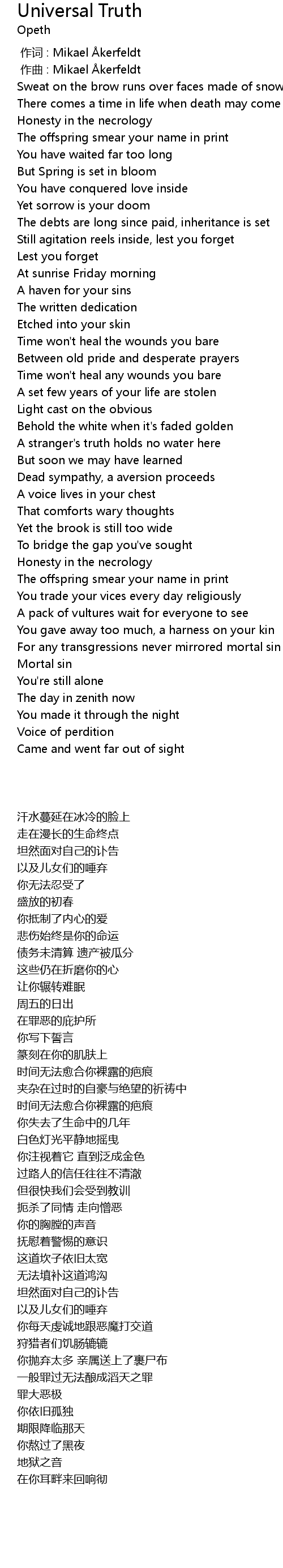 | [00:00.00] | 作词 : Mikael Åkerfeldt |