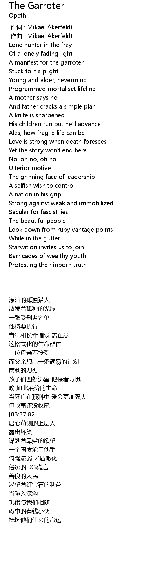 | [00:00.00] | zuò cí : Mikael kerfeldt |