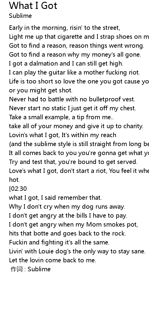 | [00:00.00] | 作词 : Sublime |