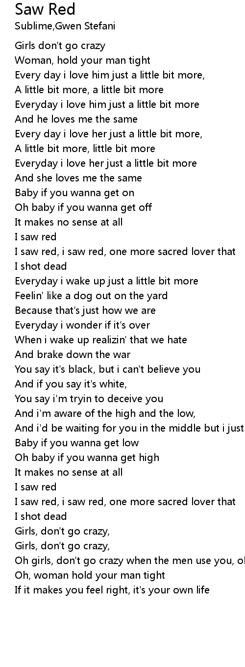 | I saw red, i saw red, one more sacred lover that | |