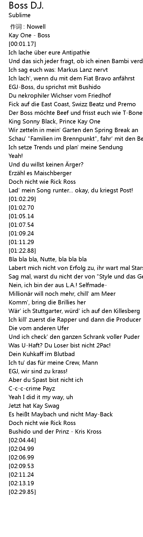 | [01:23.35] | Bla bla bla, Nutte, bla bla bla |