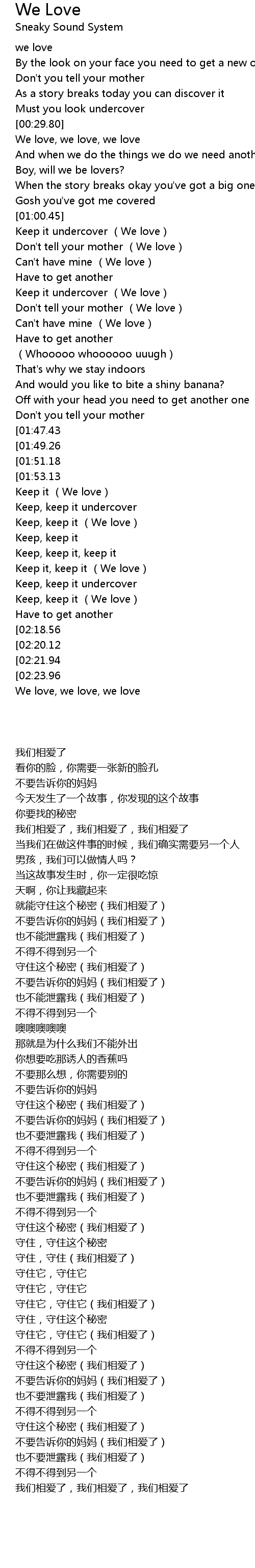 | [02:25.91][02:18.56] | Keep it undercover We love |