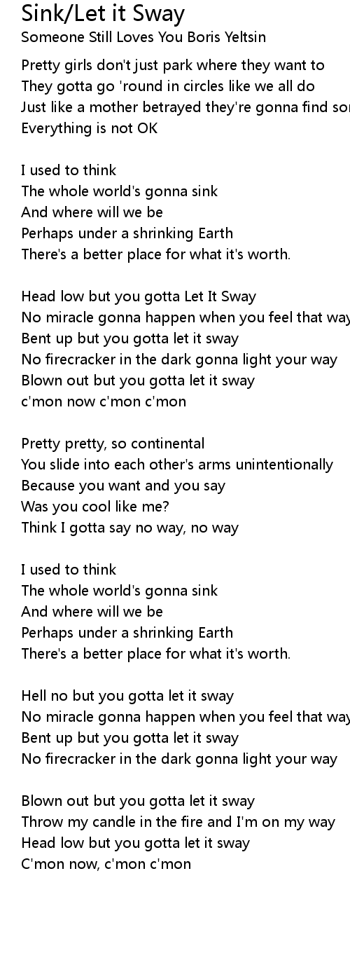 Bent up but you gotta let it sway |