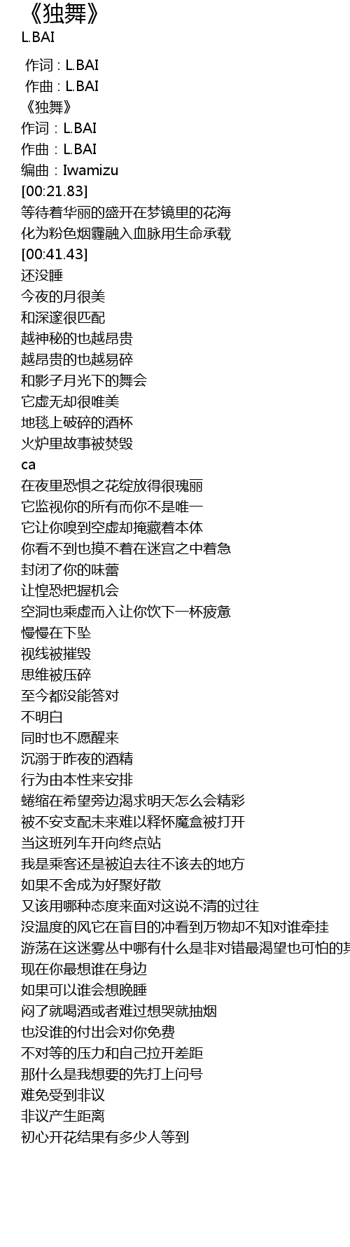 | [01:43.01] | 沉溺于昨夜的酒精 |