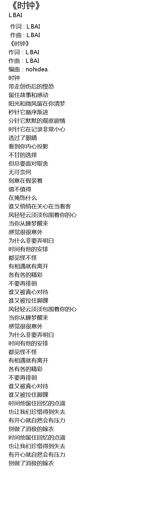 | [00:00.00] | 作词 : L.BAI |