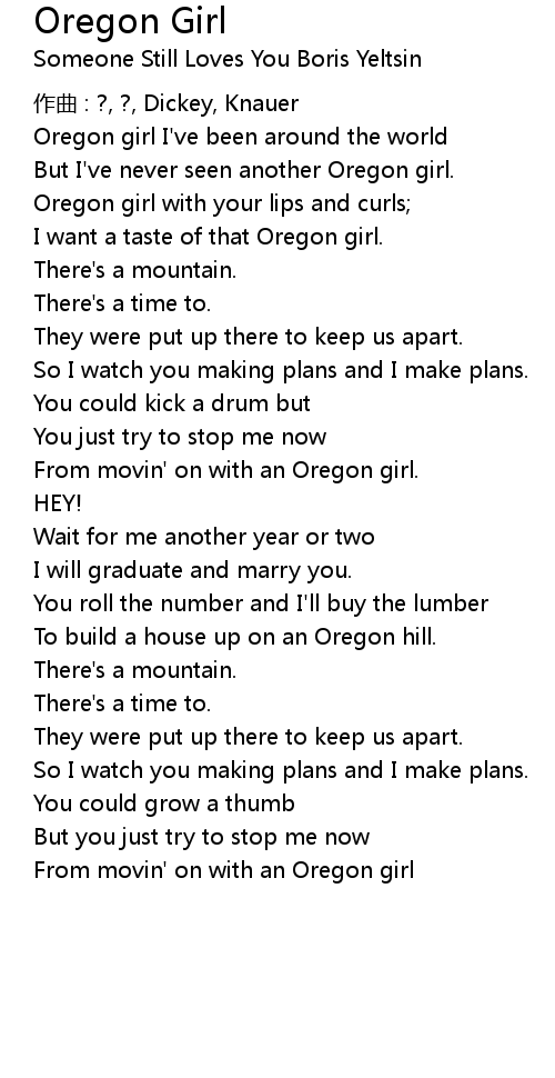 | Oregon girl with your lips and curls | |