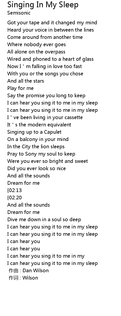 | [02:35][02:20] | I can hear you sing it to me in my sleep |