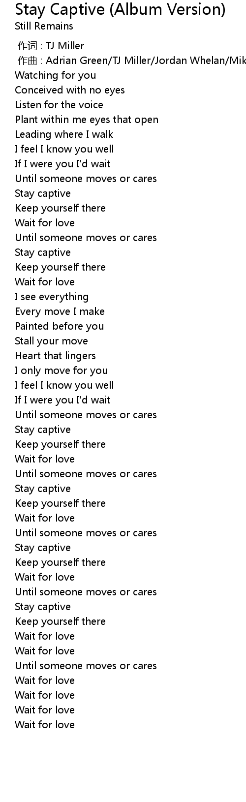 | [03:01.804] | Stay captive |