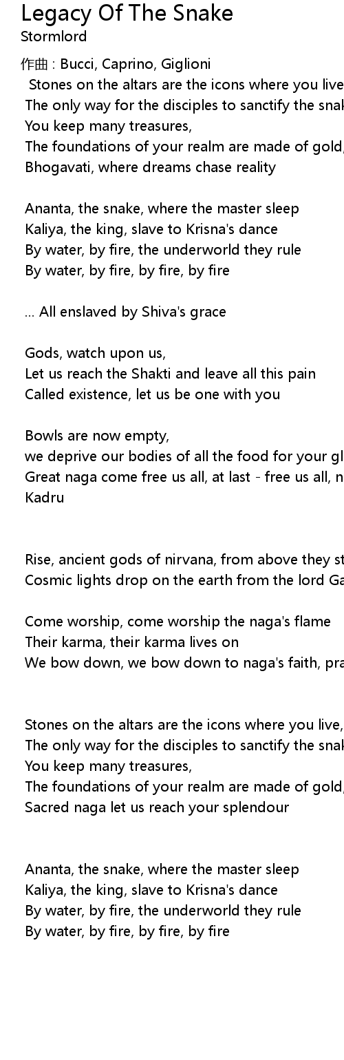 | Song | Legacy Of The Snake |