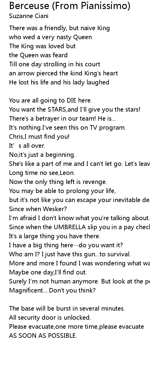 | Song | Berceuse (From Pianissimo) |