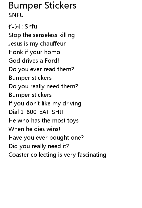 | Song | Bumper Stickers |