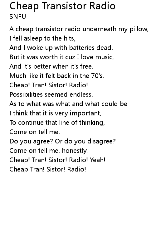 Cheap! Tran! Sistor! Radio! Yeah! |