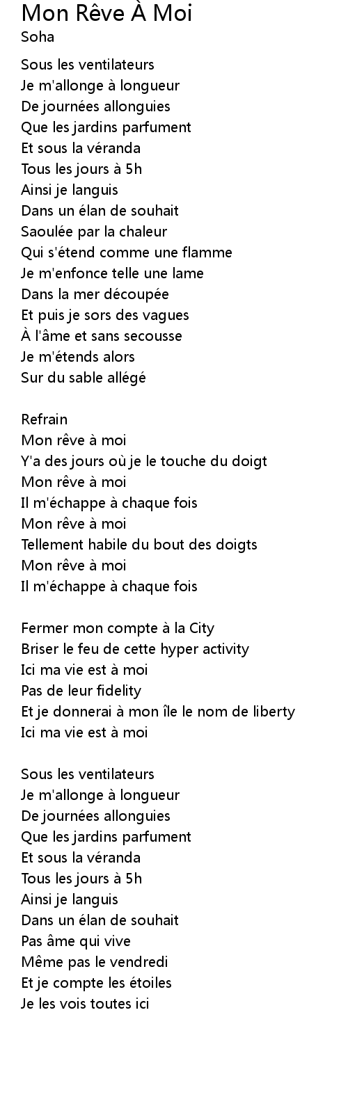 Mon Rêve À Moi Mon R ve À Moi Lyrics