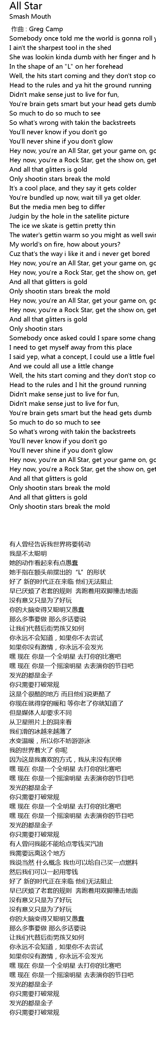 | [00:37.900] | Hey now, you' re an All Star, get your game on, go play |