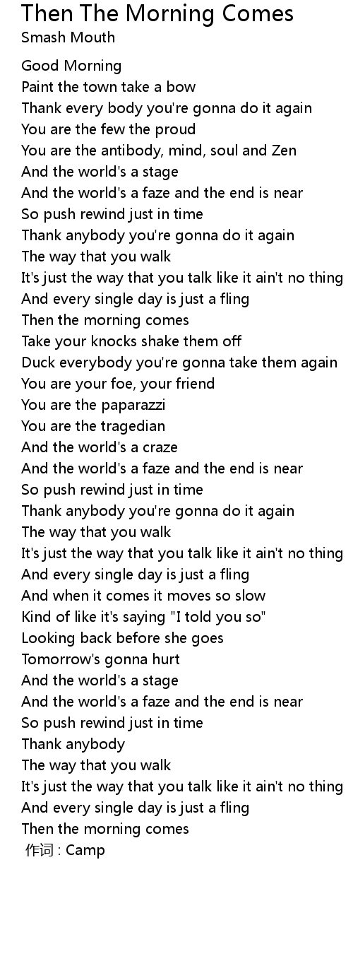 | Song | Then The Morning Comes |
