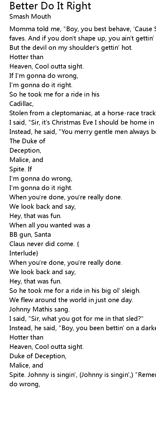 Spite. Johnny is singin', (Johnny is singin',) "Remember tonight: If you gotta do wrong, |