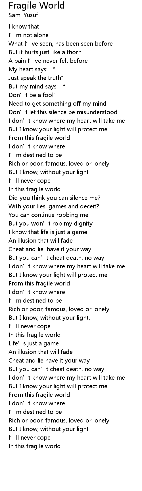 | Song | Fragile World |