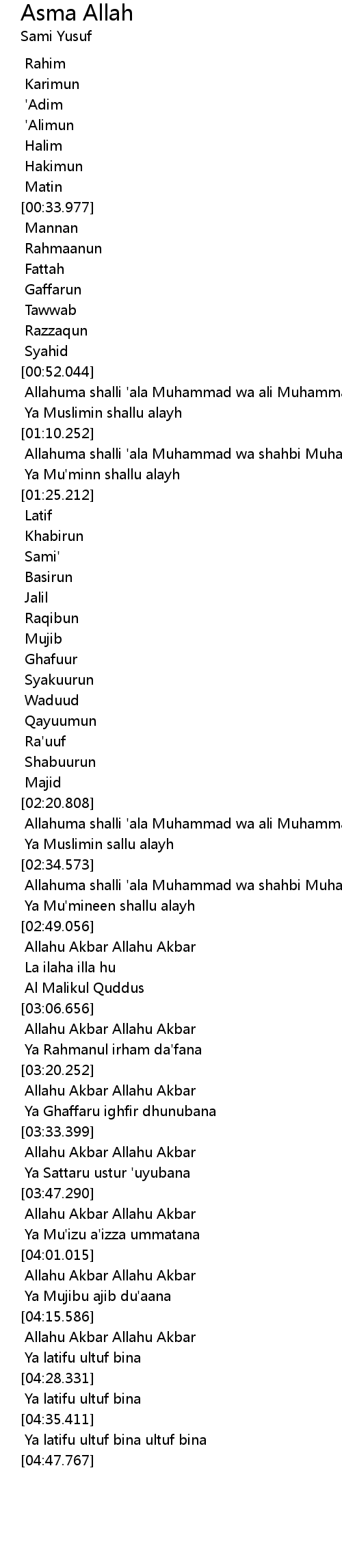 Allahuma shalli 'ala Muhammad wa shahbi Muhammad |
