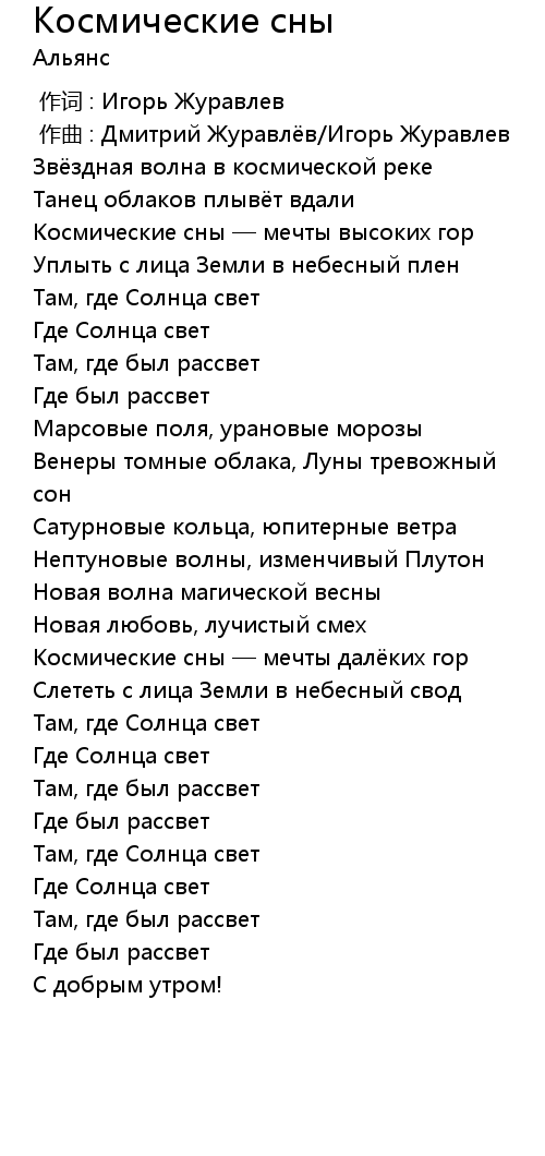 Космические сны — мечты далёких гор |