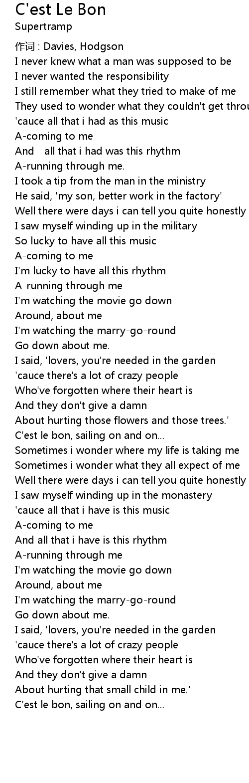 | Song | C'est Le Bon |