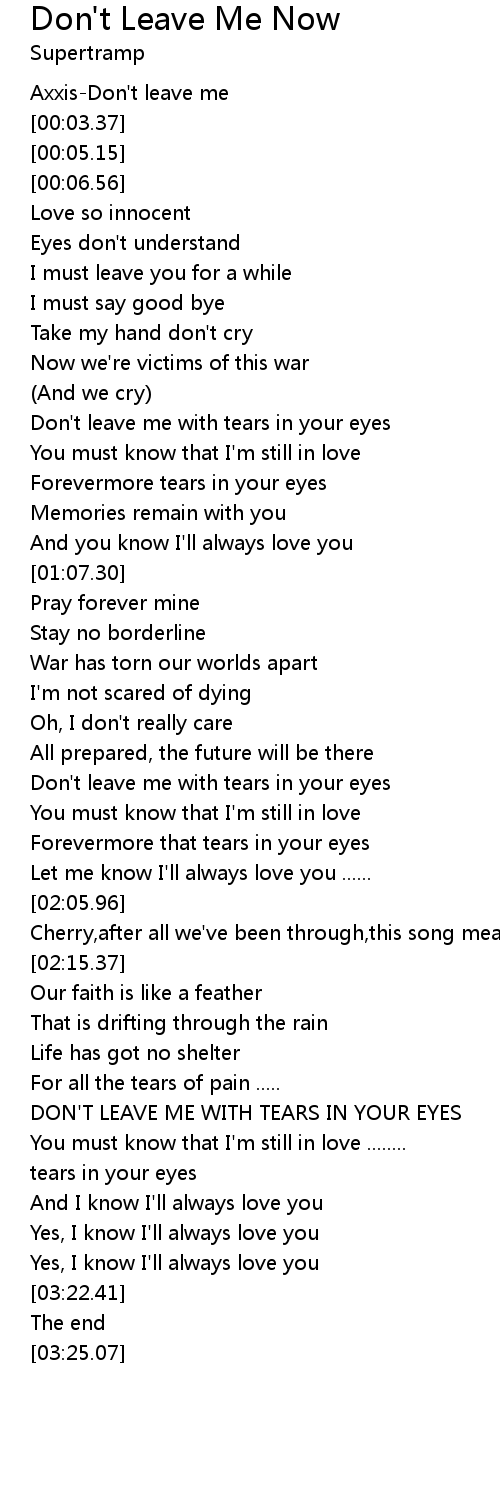 DON'T LEAVE ME WITH TEARS IN YOUR EYES |