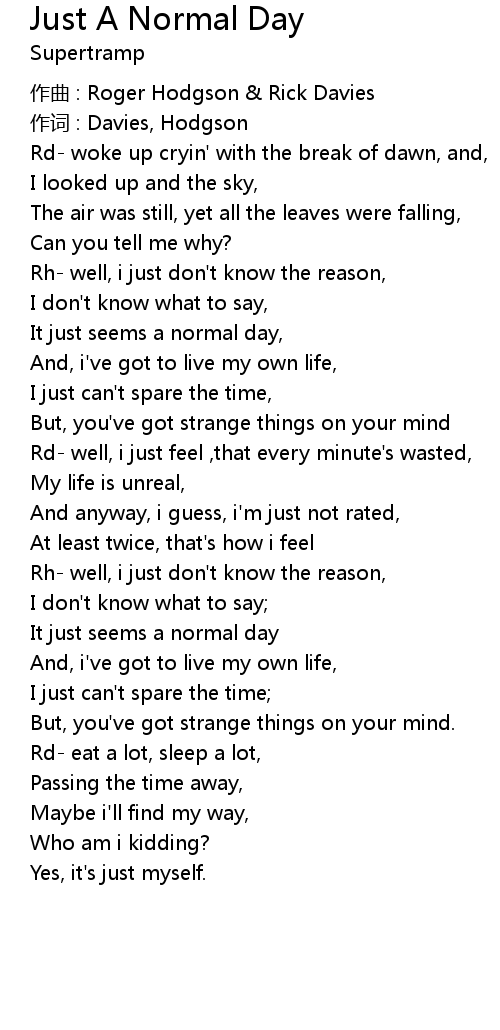 | Song | Just A Normal Day |