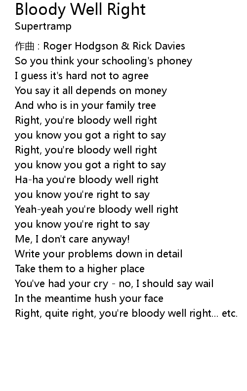 | 作曲 : Roger Hodgson & Rick Davies | |