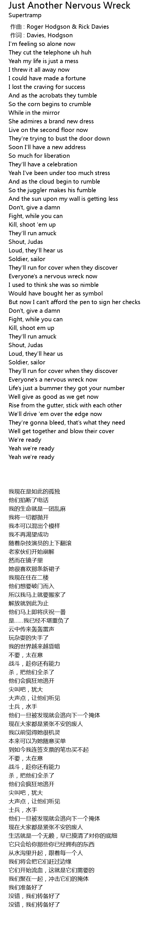 | [03:09.71] | Everyone' s a nervous wreck now |