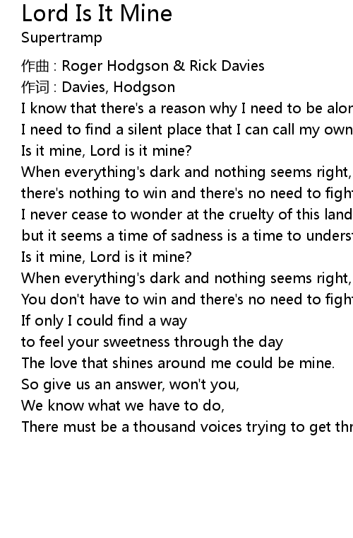 | zuò qǔ : Roger Hodgson Rick Davies | |